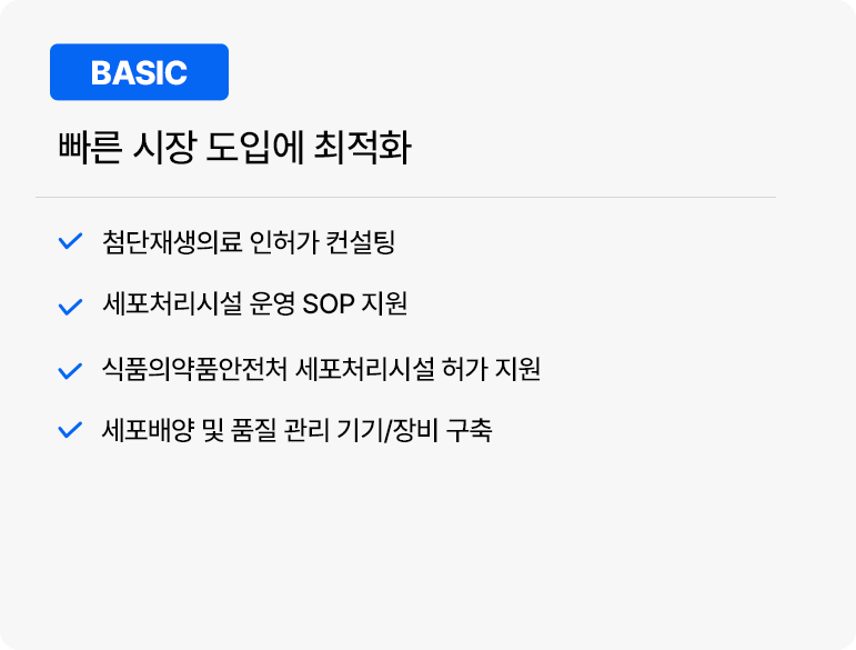불법적인 경로의 세포가 아닌, 공식 허가된 세포만을 공급하여 병원과 환자 모두 안심하고 사용할 수 있습니다.